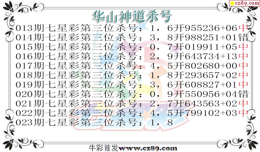 七星彩2026023期华山神道杀号图迷 10中8-3d今天开机号试机号_3d试机号码和开机号_排列五今天的试机号码_千禧排列三开机号试机号金码-福彩网